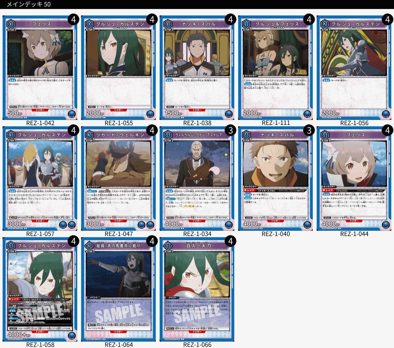 【TORECARDSコラボ】Re:ゼロから始める異世界生活:【青】クルシュ&フェリスデッキ